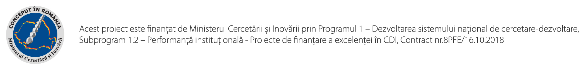 Acest proiect este finanțat de Ministerul Cercetării și Inovării prin Programul 1 – Dezvoltarea sistemului național de cercetare-dezvoltare, Subprogram 1.2 – Performanță instituțională- Proiecte de finanțare a excelenței în CDI, Contract nr. 8PFE/16.10.2018